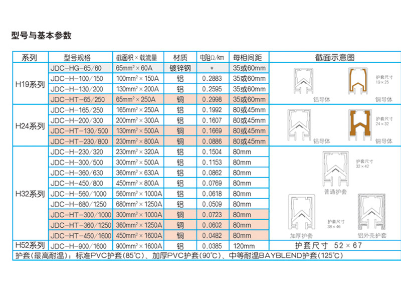 ●JDC-H型铝质单极组合式滑触线可根据需要多极任意组合,运行速度快,载流量大,使用寿命长,安装维护便捷经济,性价比高;适用于较大吨位门吊、桥吊、装卸桥、集装箱吊机等机械设备的移动输电。选用耐温性好的BAYBLEND护套,也能满足炼钢、铸造等行业高温恶劣环境下的使用要求。也可作母线长距离输电,组合方便灵活。